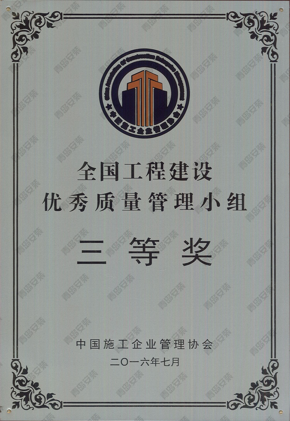 2016年度全國工程建設(shè)優(yōu)秀質(zhì)量管理小組三等獎(jiǎng)
