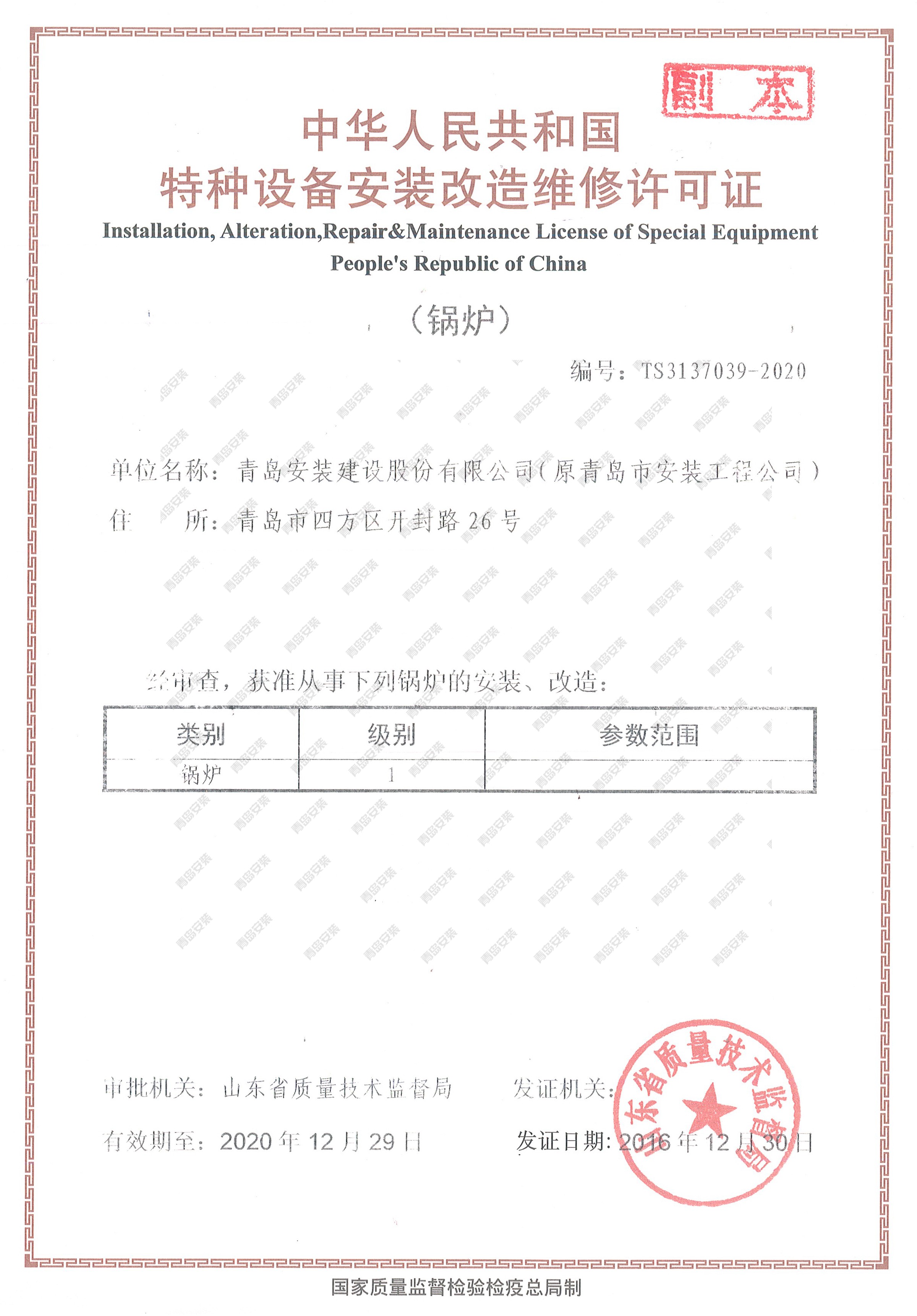 特種設備安裝改造維修許可證-鍋爐