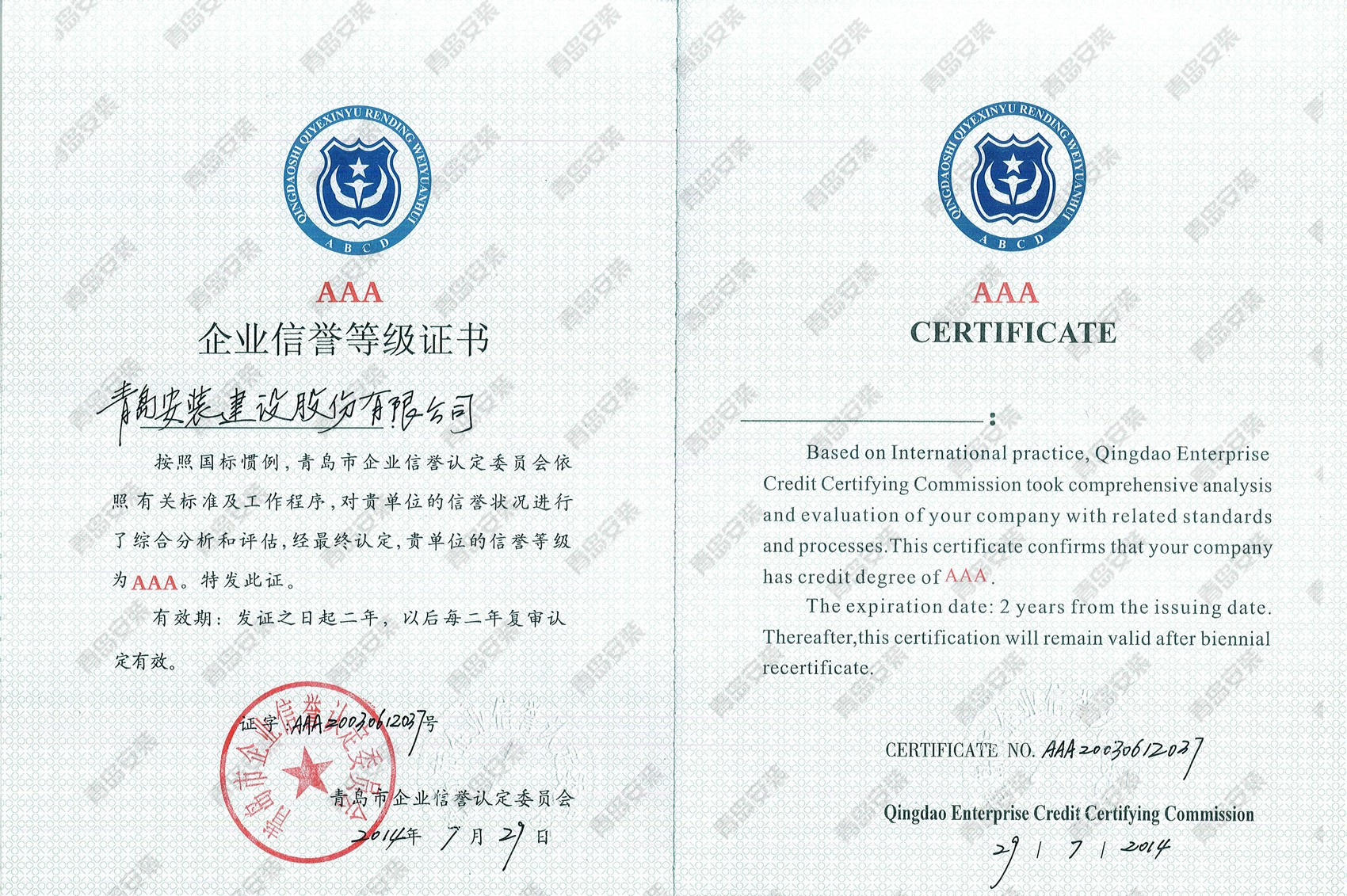 青島市AAA信譽