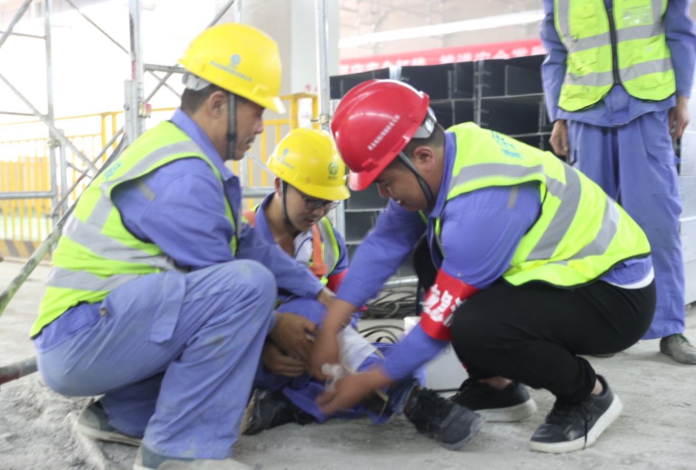 下午2點(diǎn)整,姜曉紅經(jīng)理講解了應(yīng)急演練的積極意義及具體方案,公司地鐵項(xiàng)目部安全總監(jiān)王正強(qiáng)講解滅火器材使用方法和消防疏散注意事項(xiàng)及安全帶的正確使用方法,并現(xiàn)場(chǎng)隨機(jī)邀請(qǐng)了兩名工人進(jìn)行滅火器的使用演練。2點(diǎn)20分,綜合應(yīng)急救援演練活動(dòng)總指揮劉洋同志宣布演練正式開始,演練背景:1、由于夏季多雨,車站發(fā)生雨水倒灌;2、施工現(xiàn)場(chǎng)電焊作業(yè)的焊渣引燃可燃材料導(dǎo)致火災(zāi)。隨即展開防汛、消防救援活動(dòng),經(jīng)過(guò)水泵排水、砂袋擋水、自救互救、滅后器滅后、消防水滅火、人員疏散逃生、火勢(shì)得到控制,險(xiǎn)情被成功化解。演練主要展現(xiàn)現(xiàn)場(chǎng)應(yīng)急響應(yīng)、防汛、滅火、人員疏散逃生、傷員急救轉(zhuǎn)移五個(gè)環(huán)節(jié),分應(yīng)急響應(yīng)、信息上報(bào)、防汛、滅火器滅火、消防水滅火、傷員救治與轉(zhuǎn)移、人員疏散七個(gè)場(chǎng)景演練,鍛煉搶險(xiǎn)救援隊(duì)伍,提高先期處置能力。
