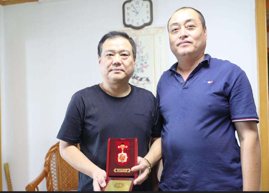 9月23日上午,青島安裝建設(shè)股份有限公司紀(jì)委書記、工會主席李金通與相關(guān)同志帶著上級領(lǐng)導(dǎo)部門和公司領(lǐng)導(dǎo)的重托,將這枚閃耀著光輝象征與最高榮譽(yù)的獎?wù)滤偷搅艘娮C共和國誕生和發(fā)展奇跡并為之做出突出貢獻(xiàn)的全國勞模賀再奎及家人手中。感謝他為祖國和人民的無私奉獻(xiàn),更感謝他為青島安裝公司帶來的無尚榮耀。